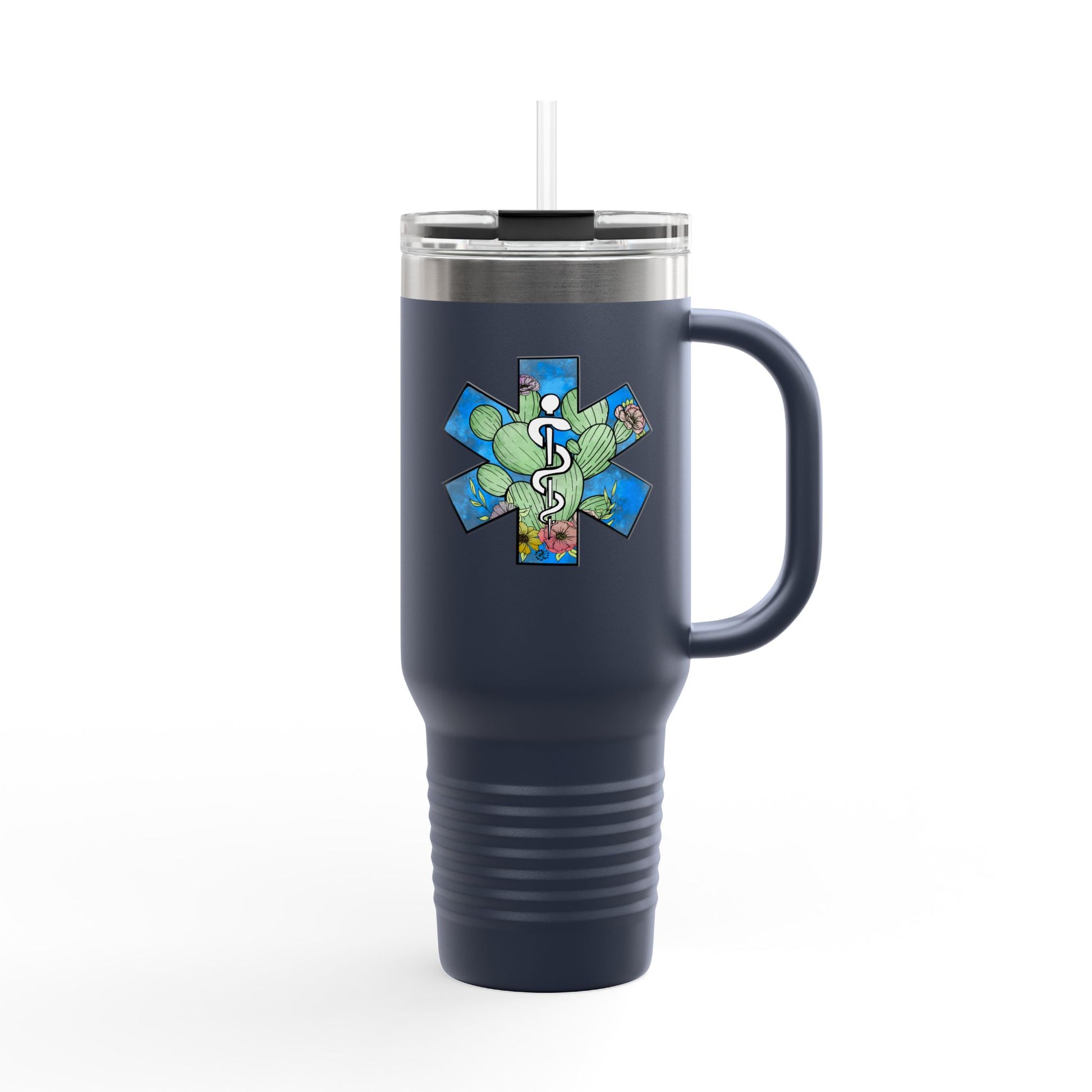 EMS Star of Life, EMT, Paramedic, Arizona Cactus Design 40oz Insulated Travel Mug - Perfect for Adventurers & Healthcare Workers
