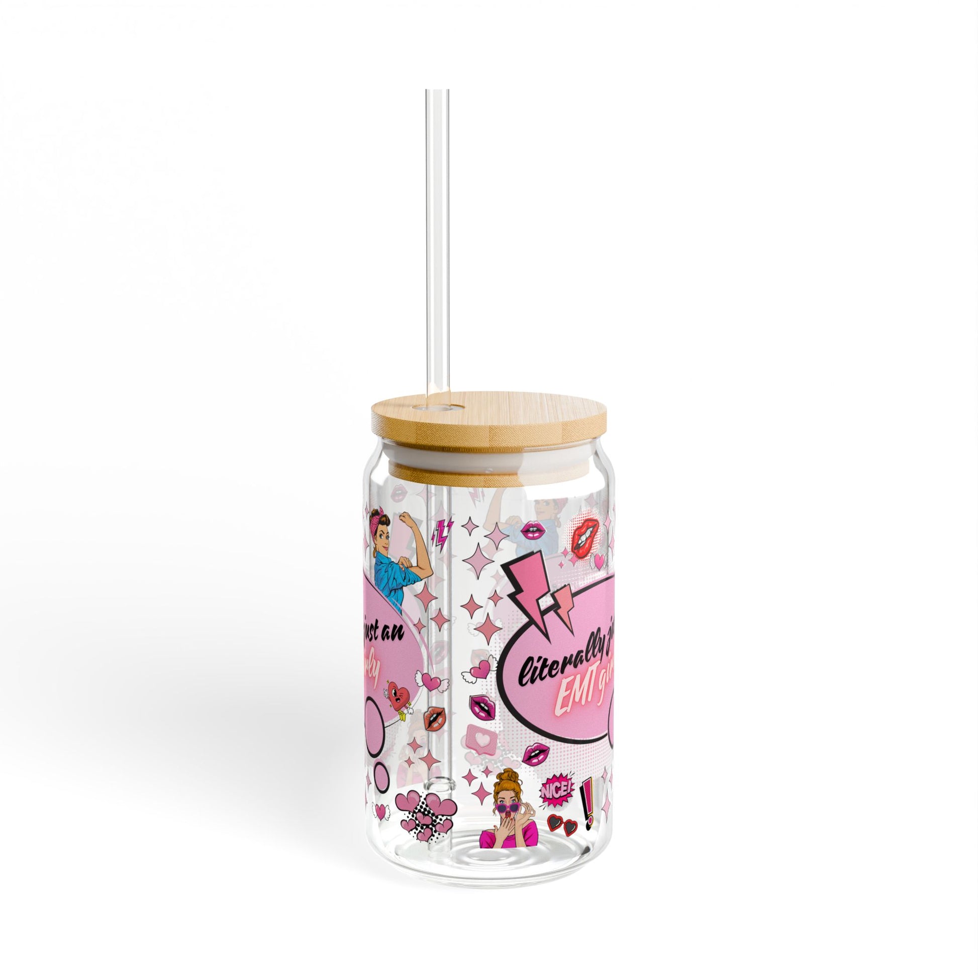 Fun EMT Girly Sipper Glass - 16oz with Bamboo Lid and Straw