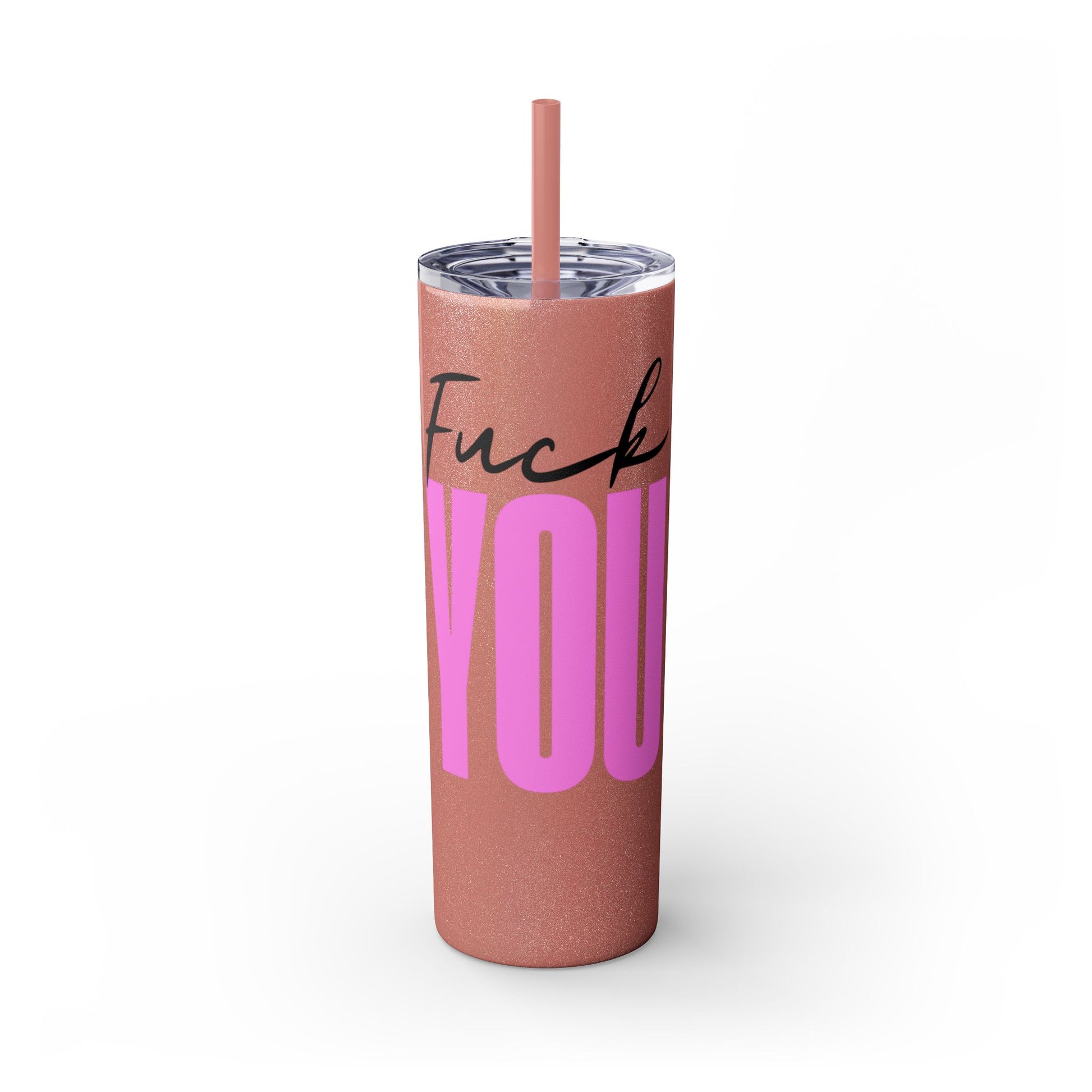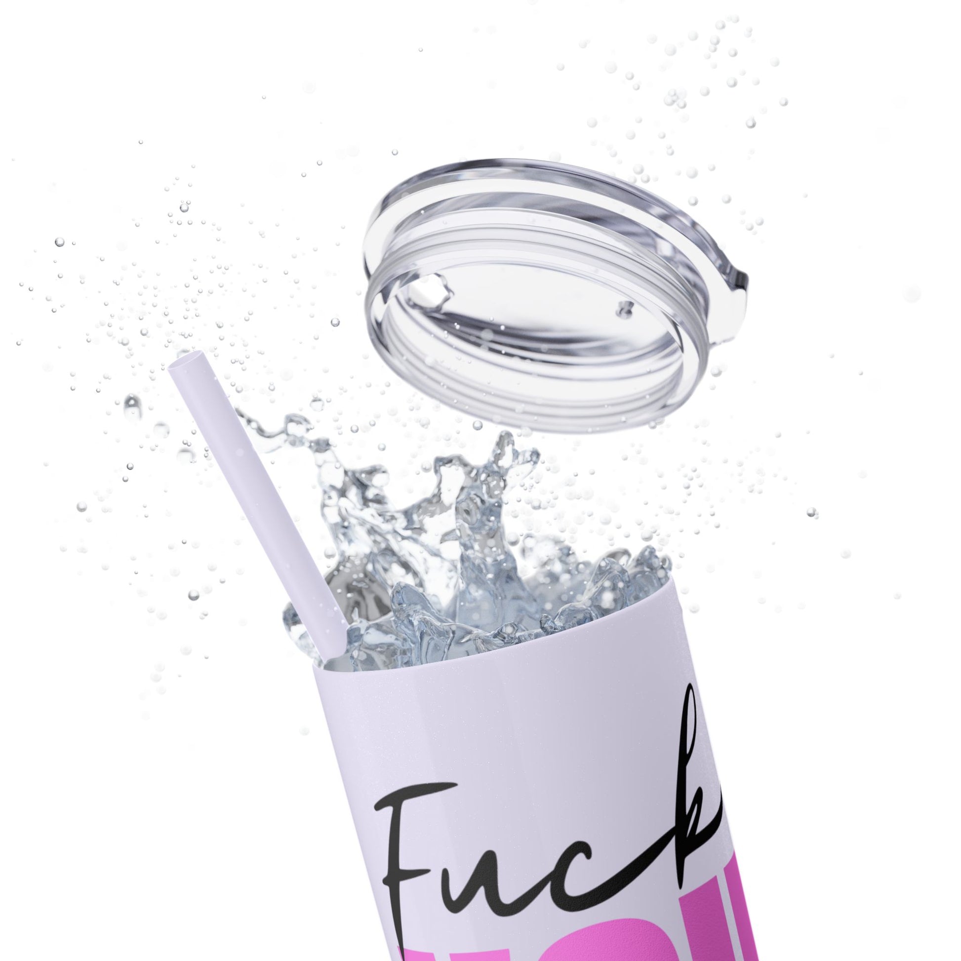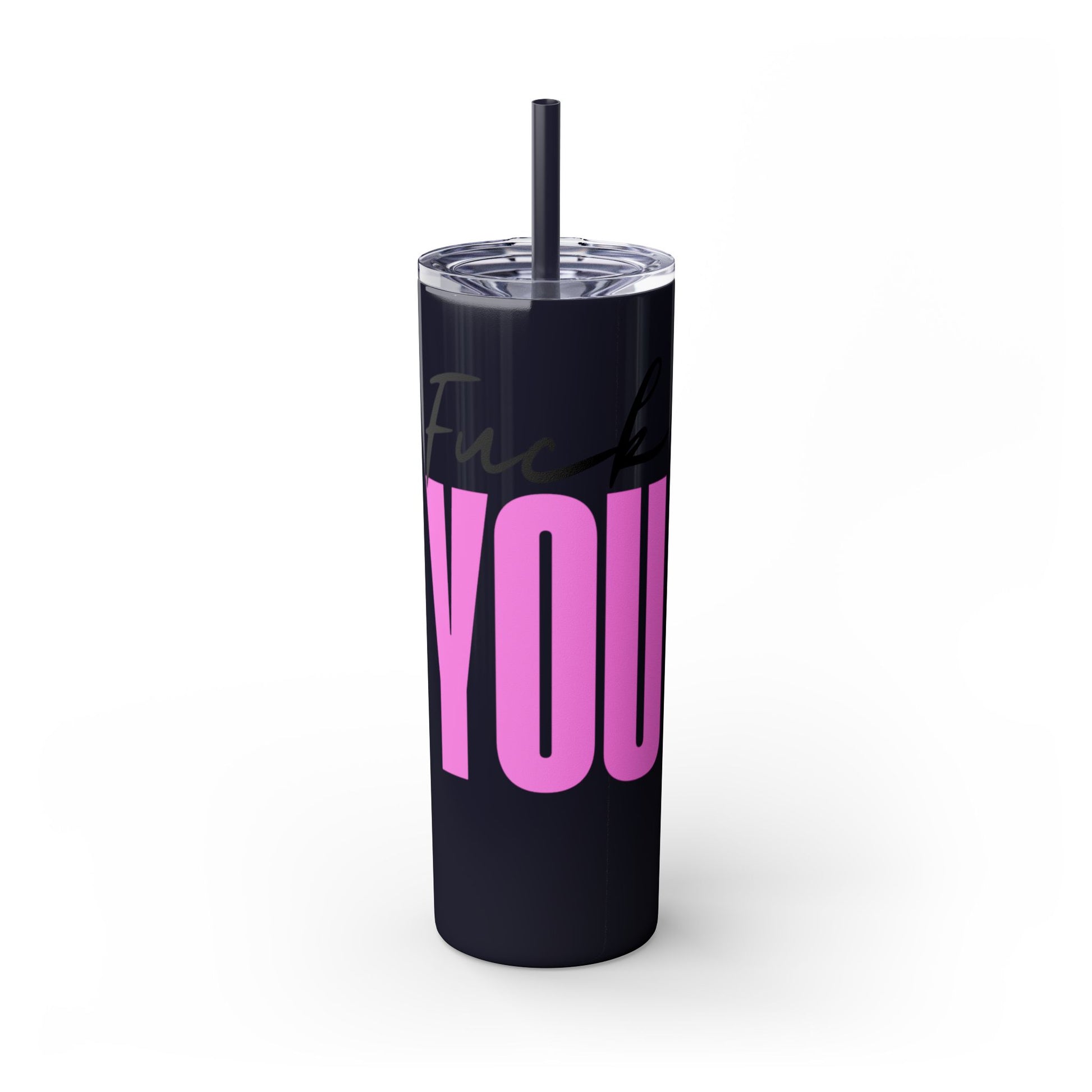 Funny 20oz Skinny Tumbler with Straw - "Fuck You" Design