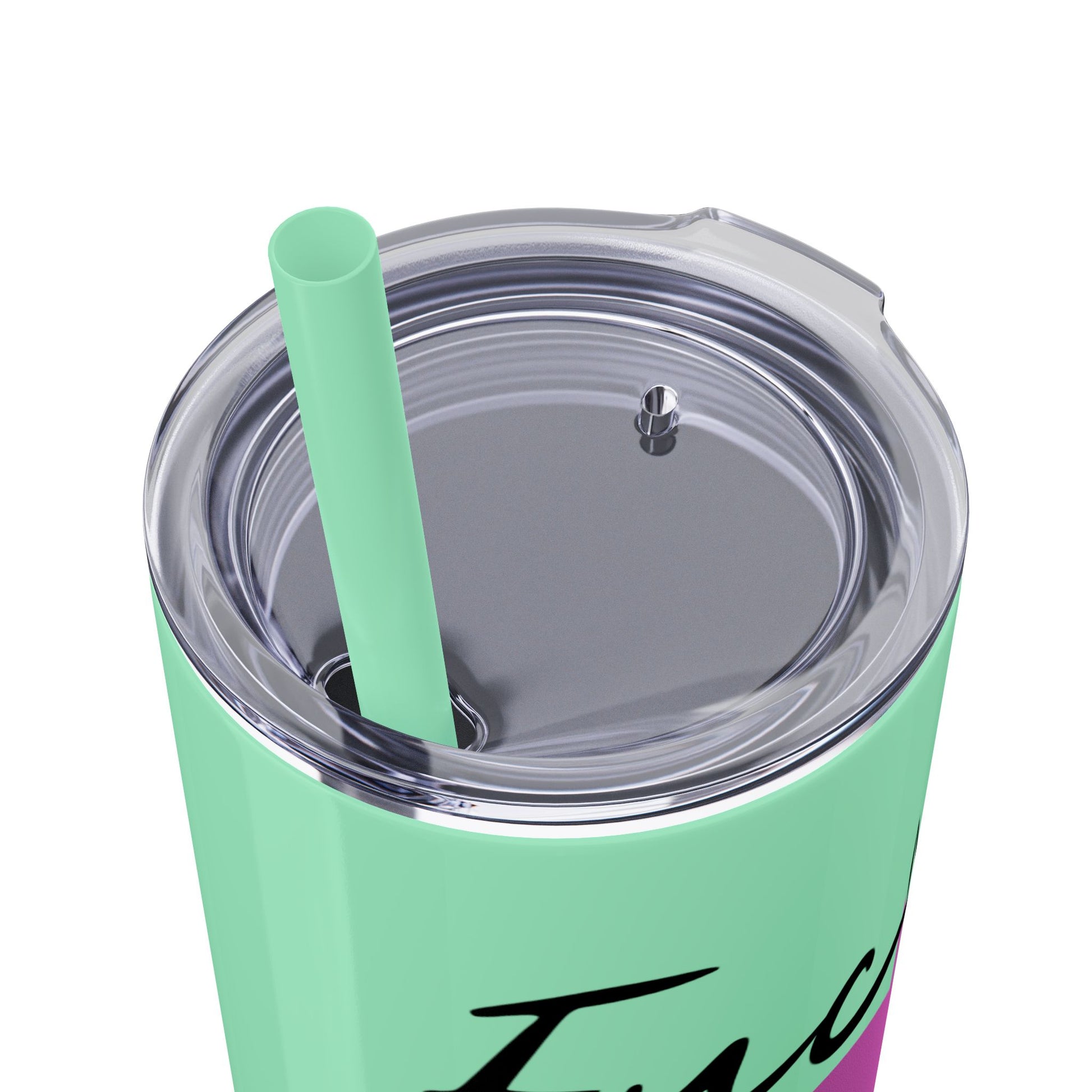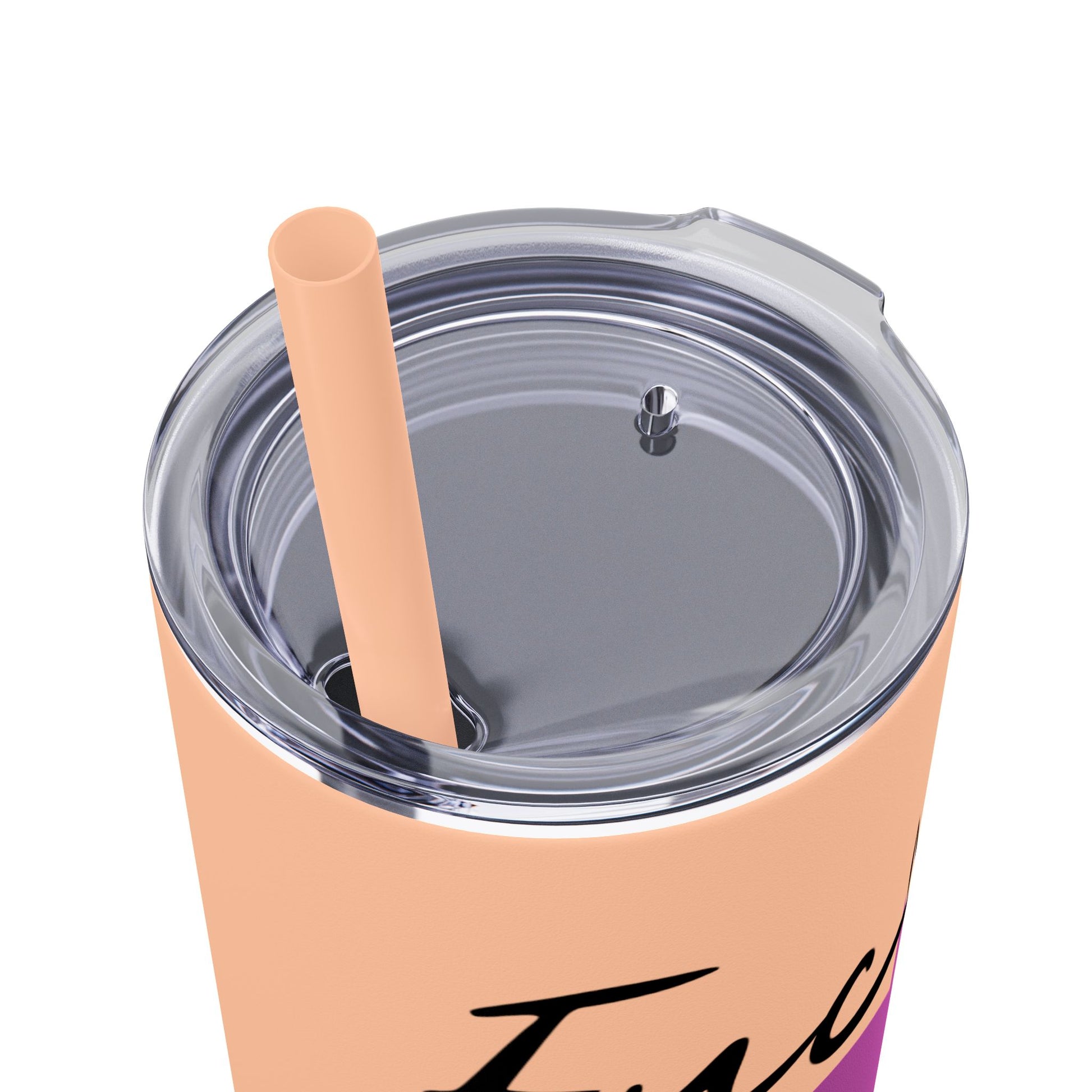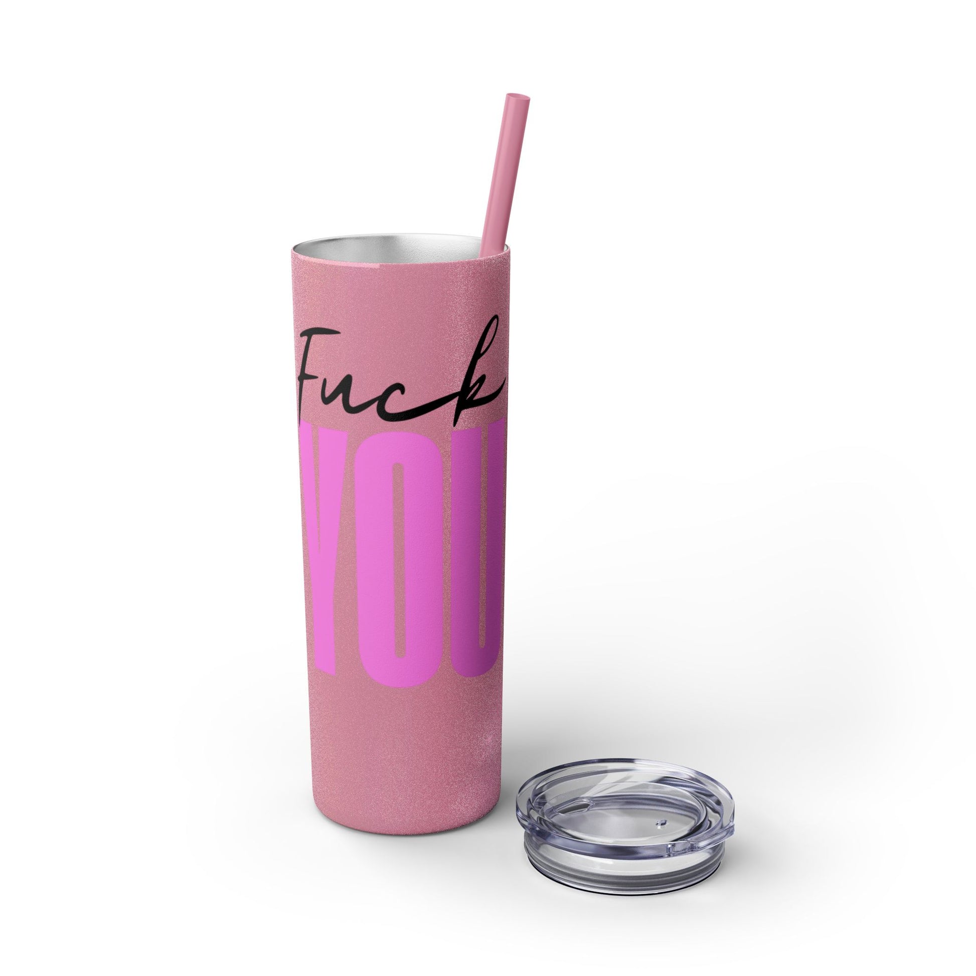 Funny 20oz Skinny Tumbler with Straw - "Fuck You" Design