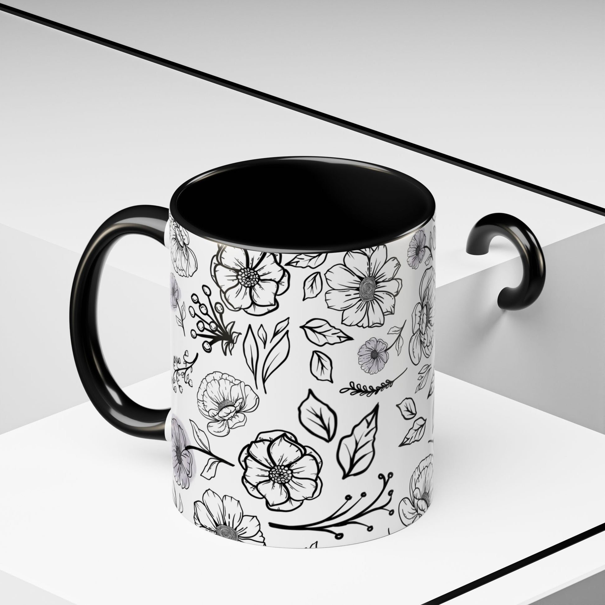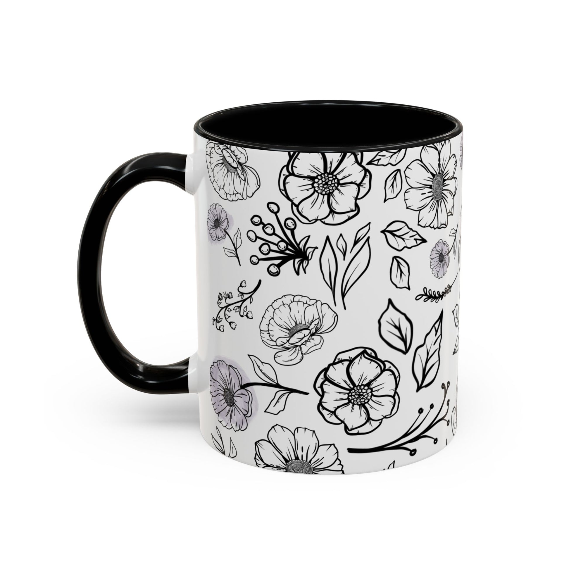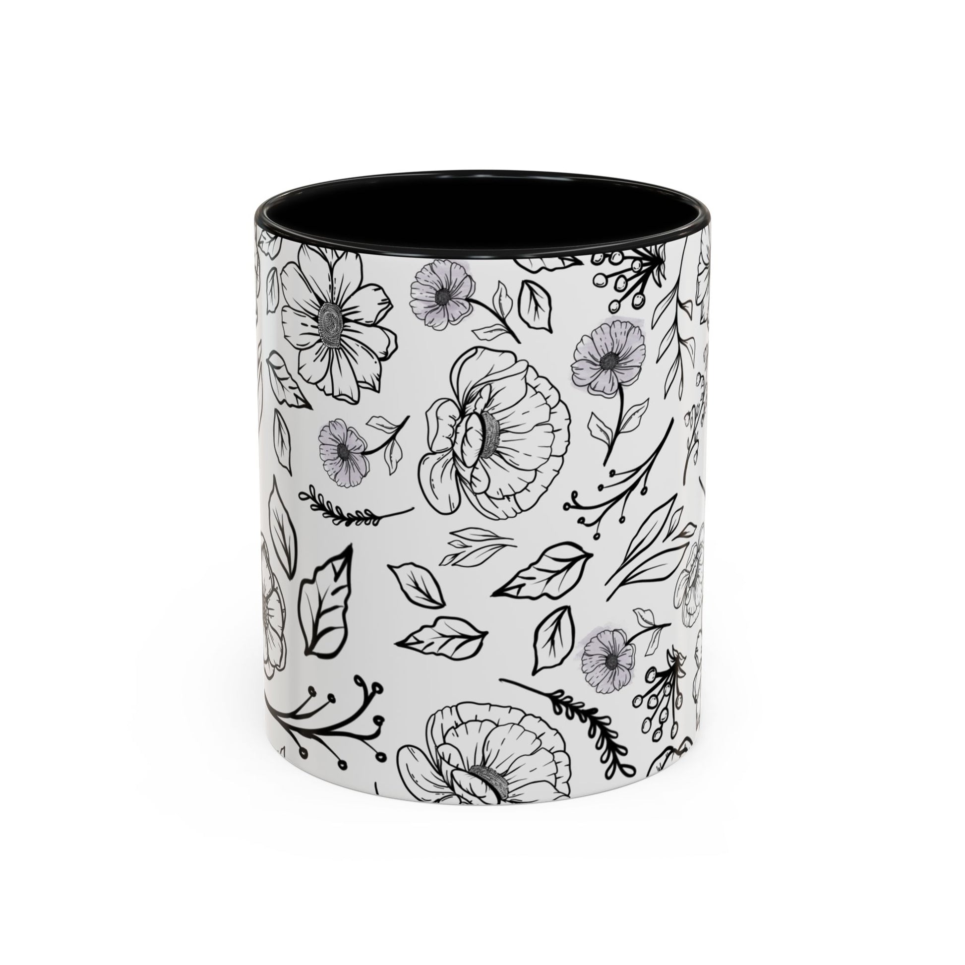 Handdrawn Floral Garden Coffee Mug - 11 & 15oz Black & White Design
