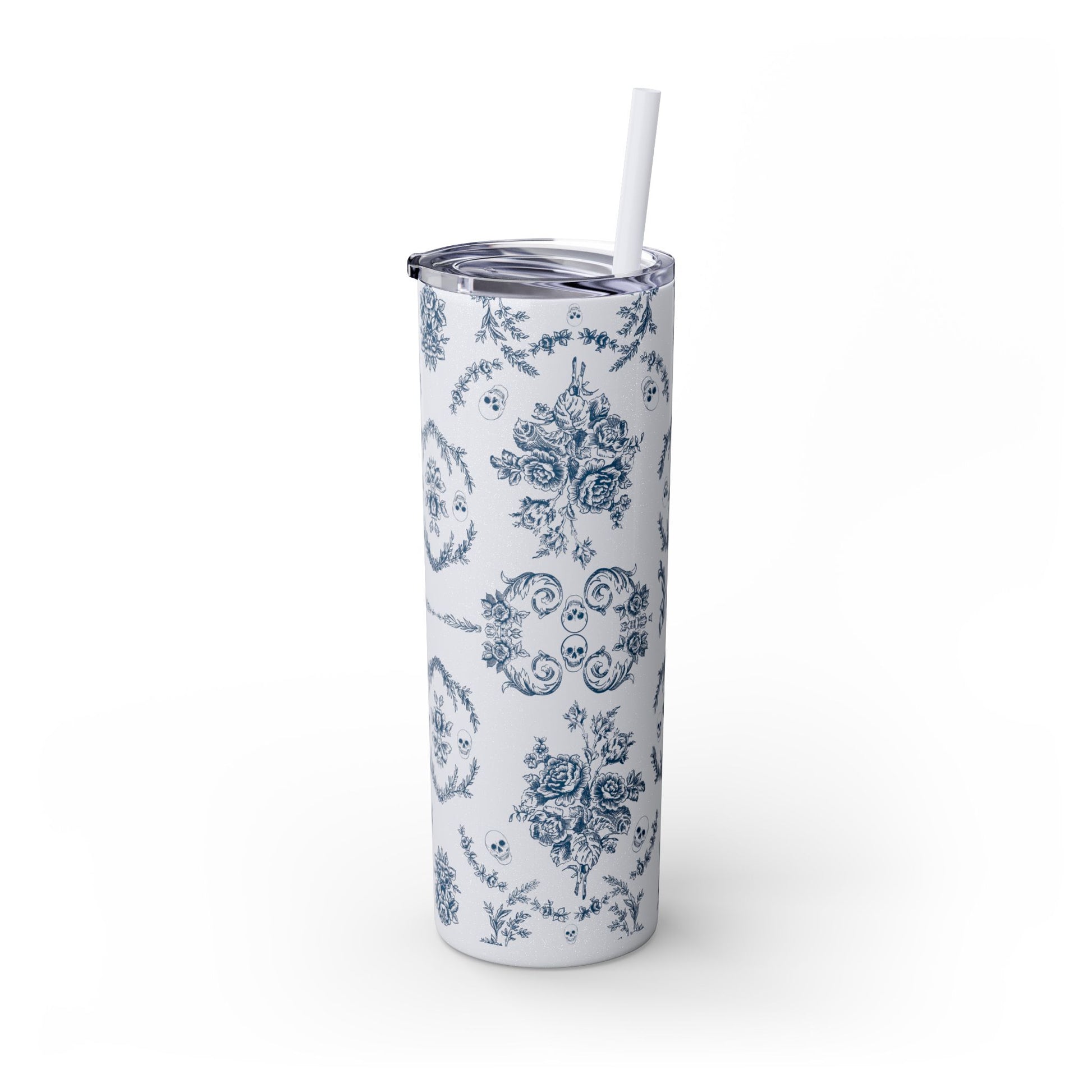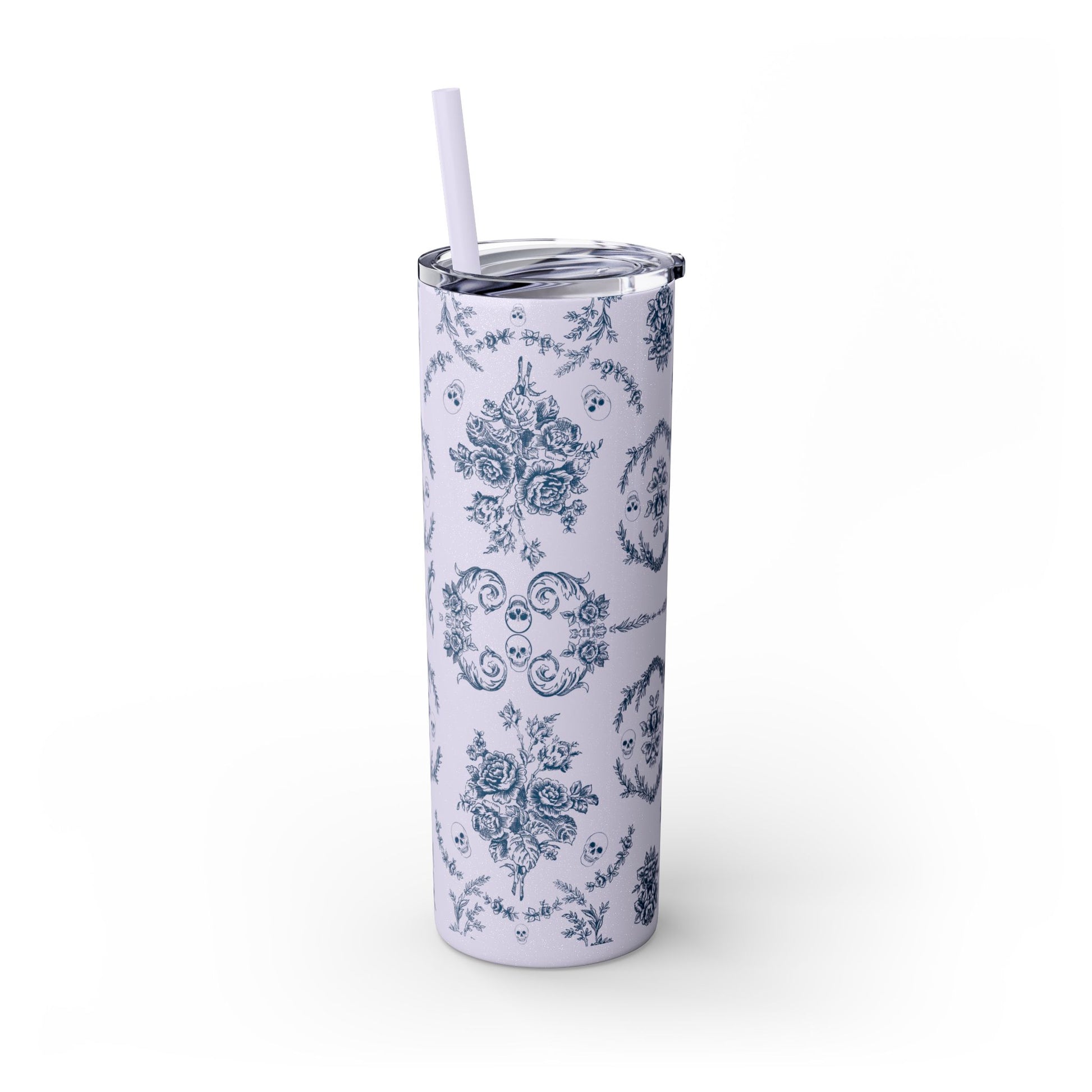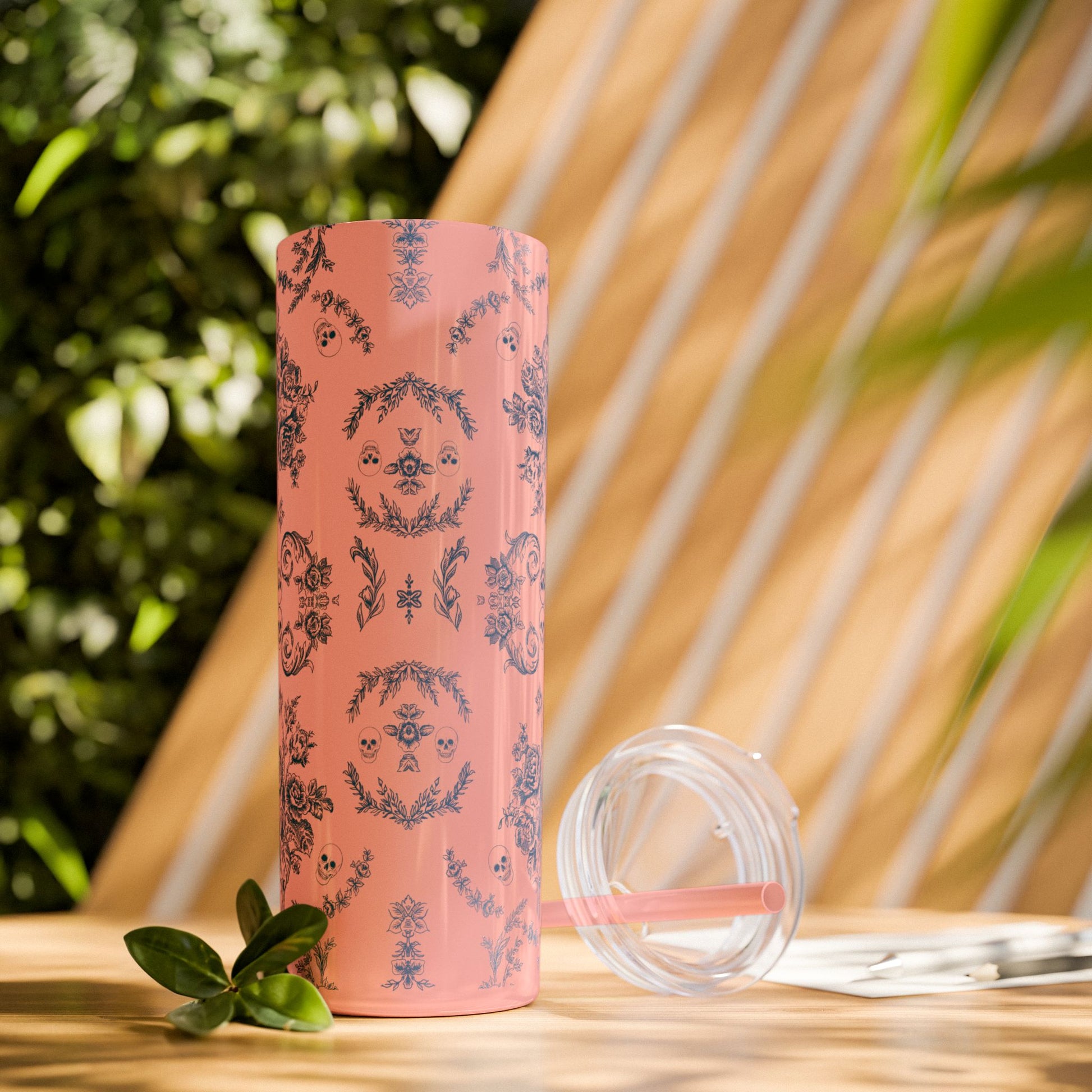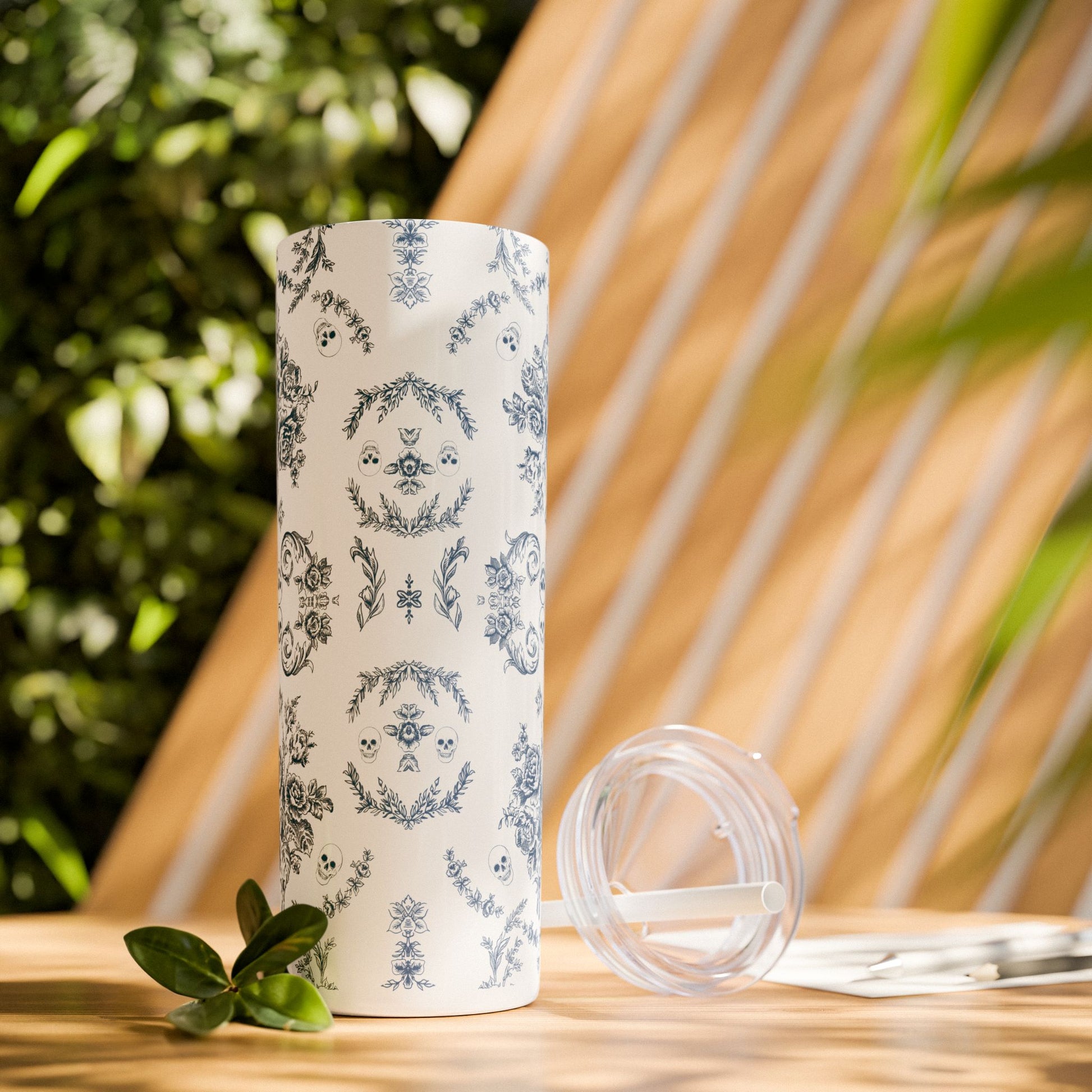Old Money Halloween Floral Skinny Tumbler with Straw, 20oz | Perfect for Coffee, Tea, Smoothies, Eco-Friendly Drinkware, Gift Idea