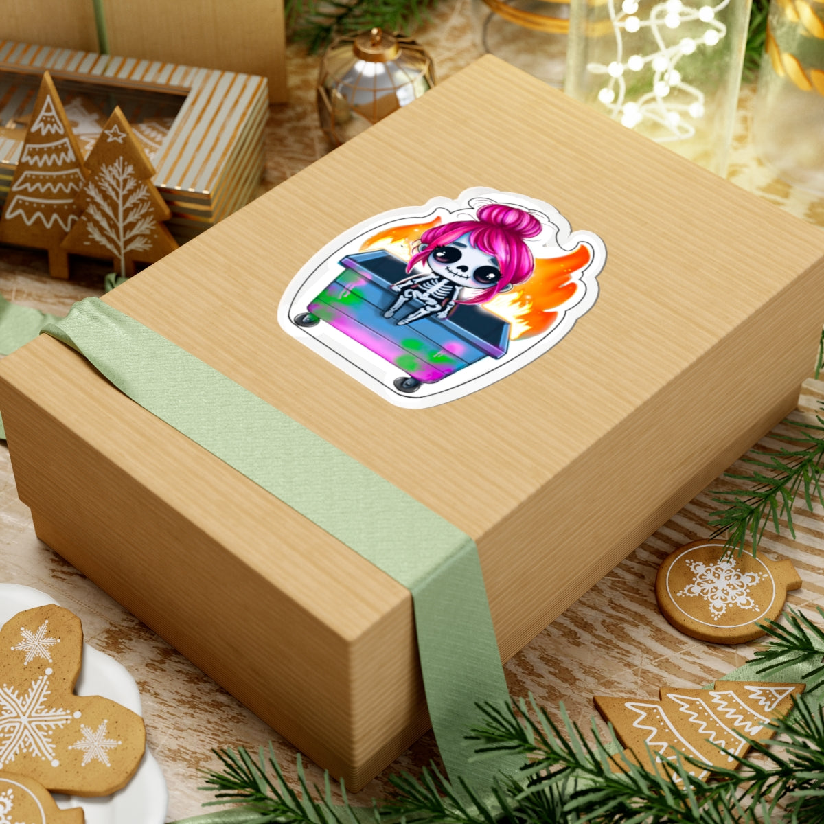 Sassy Skeleton Girl Kiss-Cut Stickers - Edgy and Fun for Your Laptop, Water Bottles, and More!