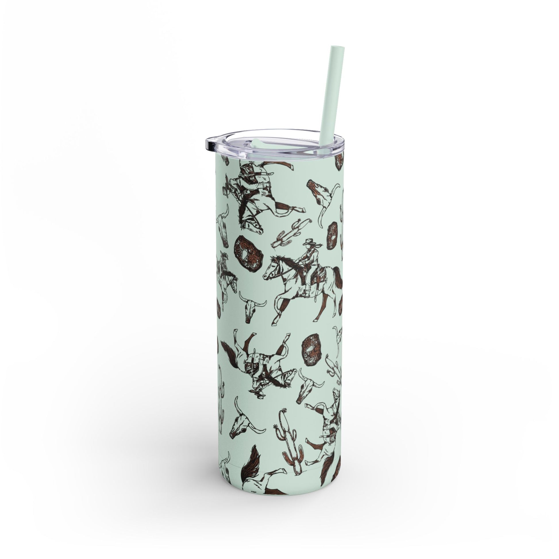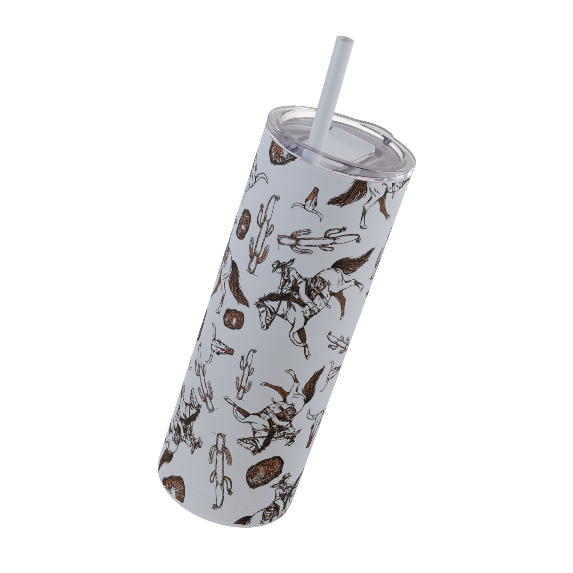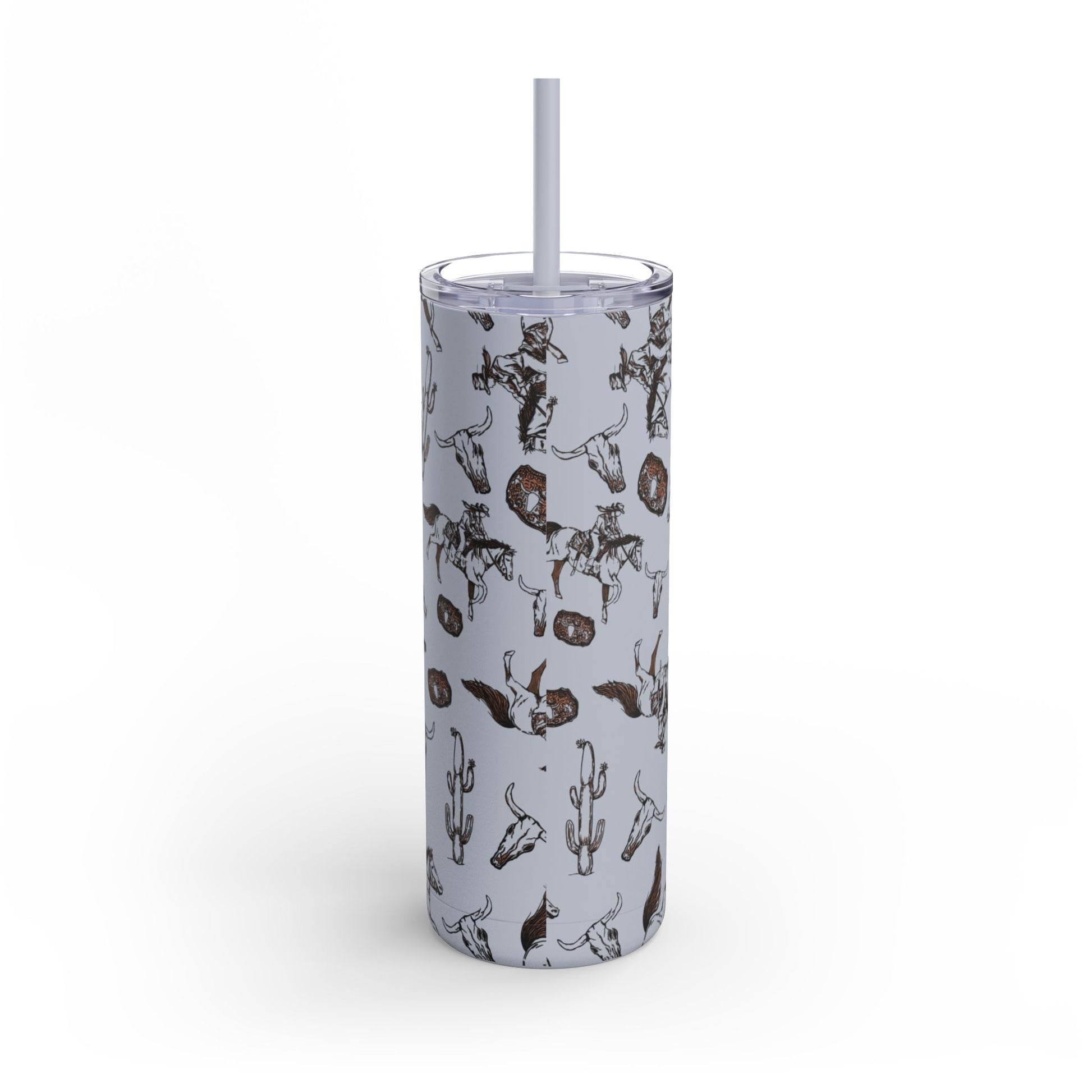 Wild West Adventure Tumbler - 20oz Matte Skinny Travel Mug with Cactus & Cowboy Design