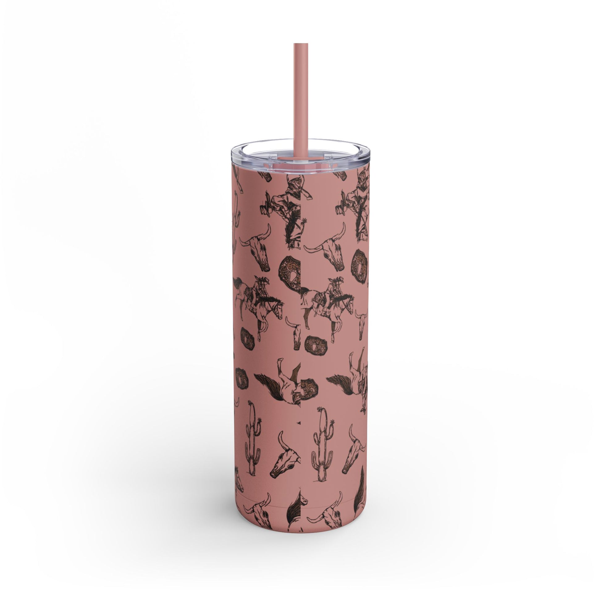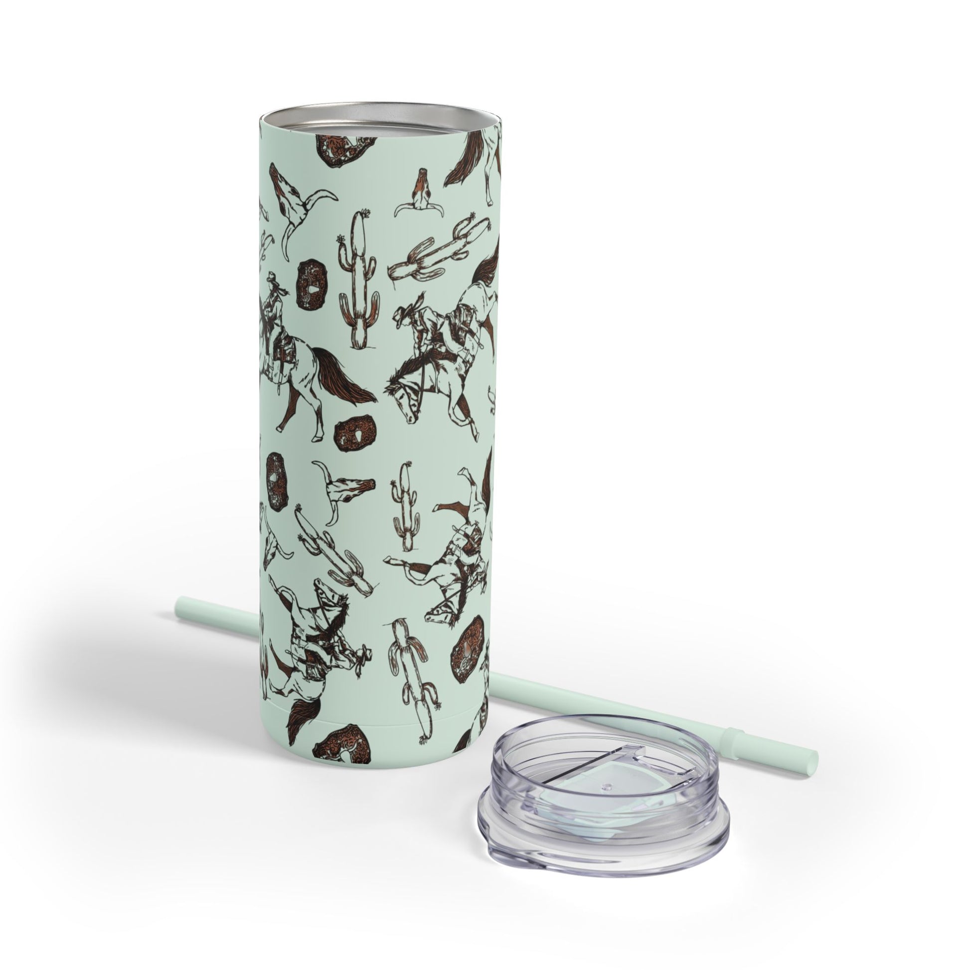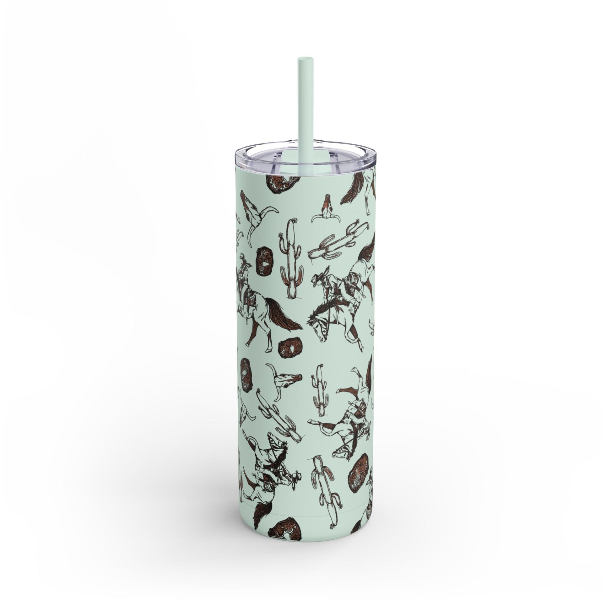 Wild West Adventure Tumbler - 20oz Matte Skinny Travel Mug with Cactus & Cowboy Design